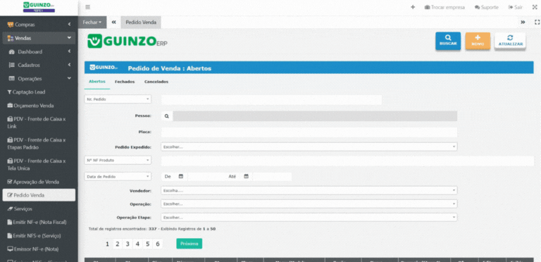 Com o Pedido de Venda do GUINZO, você pode: