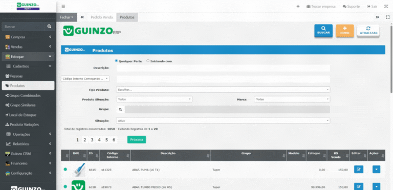 O Controle de Estoque Integrado do GUINZO.ERP garante gestão total e em tempo real de todos os produtos e movimentações do seu negócio. Com ele, sua empresa mantém o equilíbrio entre entrada, saída e disponibilidade de itens, evitando perdas e garantindo uma operação mais eficiente.