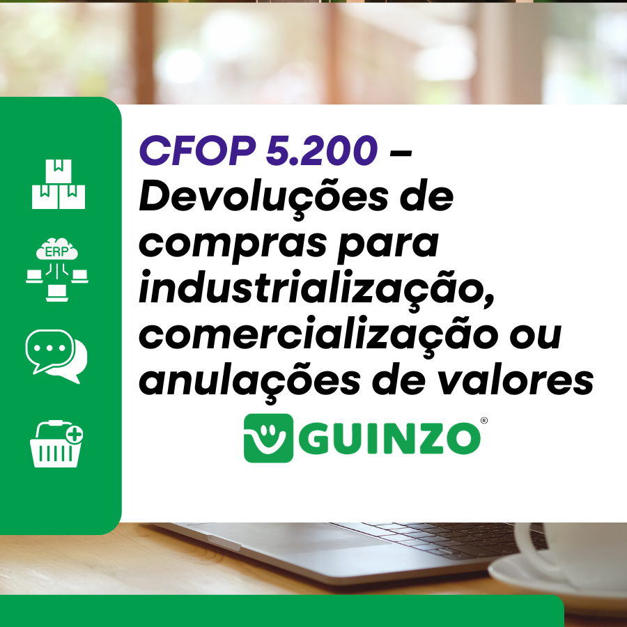 CFOP 5.200 – Devoluções de compras para industrialização, comercialização ou anulações de valores Galeria CFOP 5.200 – Devoluções de compras para industrialização, comercialização ou anulações de valores Por GUINZO|2025-12-15T15:12:21-03:0001/01/2025|Categories: CFOP|Tags: area fiscal, cfop, nf-e, nf-e entrada, tipodenotafiscal|